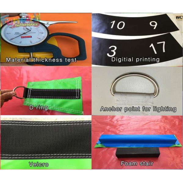We always use the best of 0.55mm pvc tarpaulin(18OZ) ,all of our PVC tarpaulin which is Fire Retardant, and water proof. All the entrance of Funworld Inflatable toys is safe,with reinforce strip at all sides,The outlet with double zipper is use for faster deflating and the velcro is use for protecting the zipper.Each toy has two pipes for inflating. The steps for All Funworld inflatable slide has double reinforced and with strong handles at two sides, children and adults are safe when climbing slide, the slide sheet is easy for sliding down.